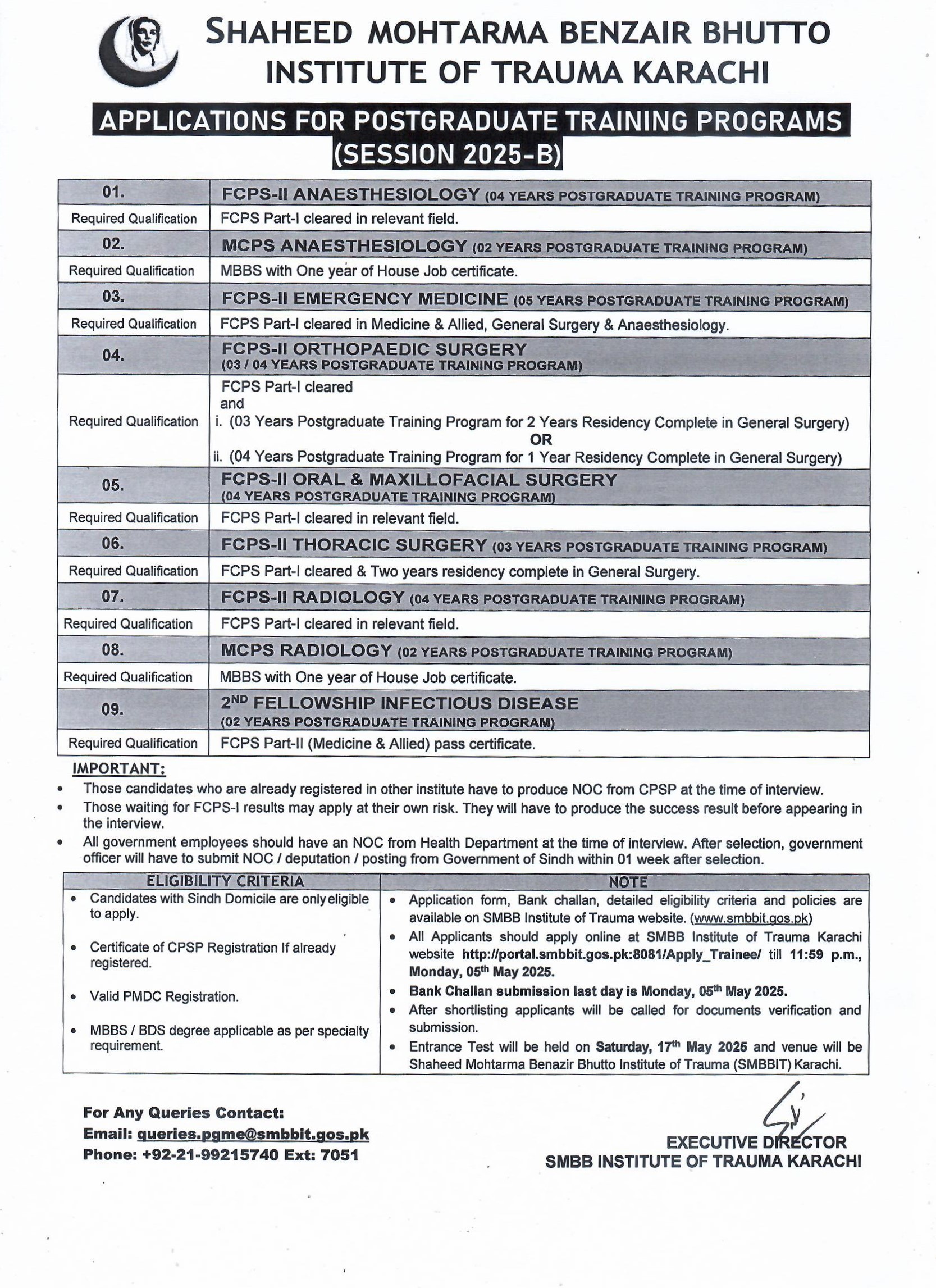 Eligibility Criteria for Postgraduate Training Programs